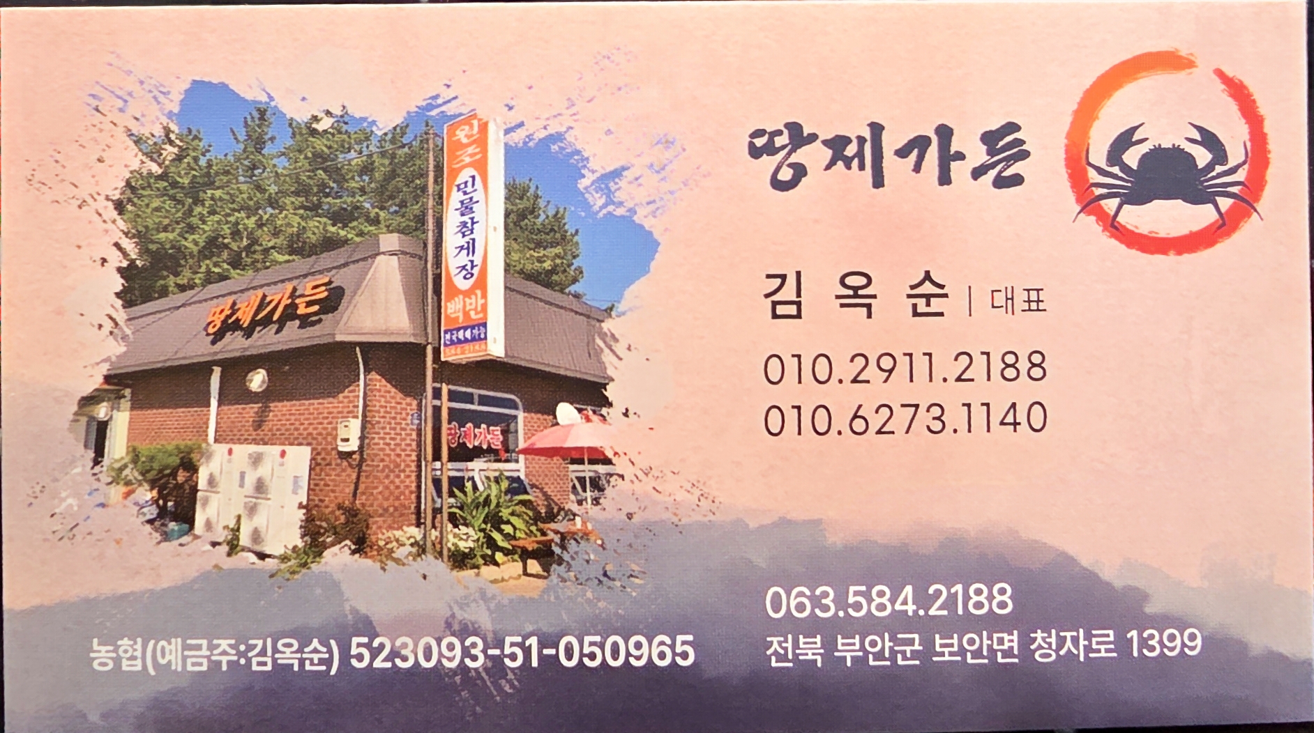 땅제가든: 곰소항 가는 길목에 위치. 민물게장 전문점. 점심시간에는 붐빌 수 있으니 참고.