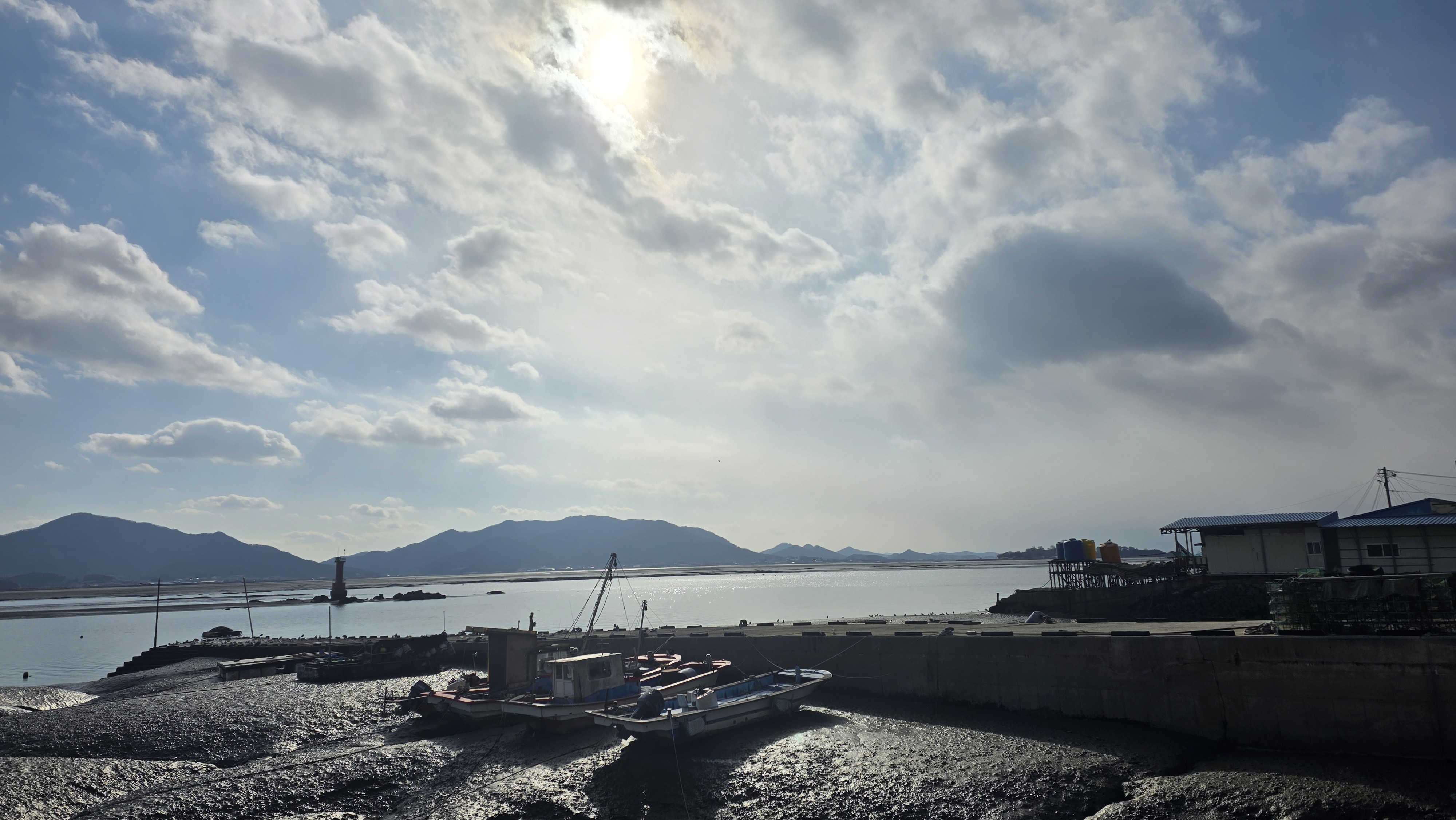 운 좋게도 오늘은 날씨가 참 좋았다. 겨울 햇살이 따스하게 내리쉬는 오후, 서해의 낮은 하늘 아래서 가족들과 함께 바다를 바라보며 이런저런 이야기를 나누었다. 부안에 살면서도 이렇게 곰소항을 찾아올 때마다 바다는 늘 새로운 모습으로 우리를 반긴다.
